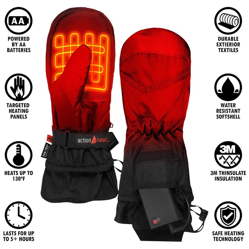 ActionHeat AA Battery Heated Mittens for Men, Women – Softshell Mittens w/Adjustable Gauntlet, Textured Grip