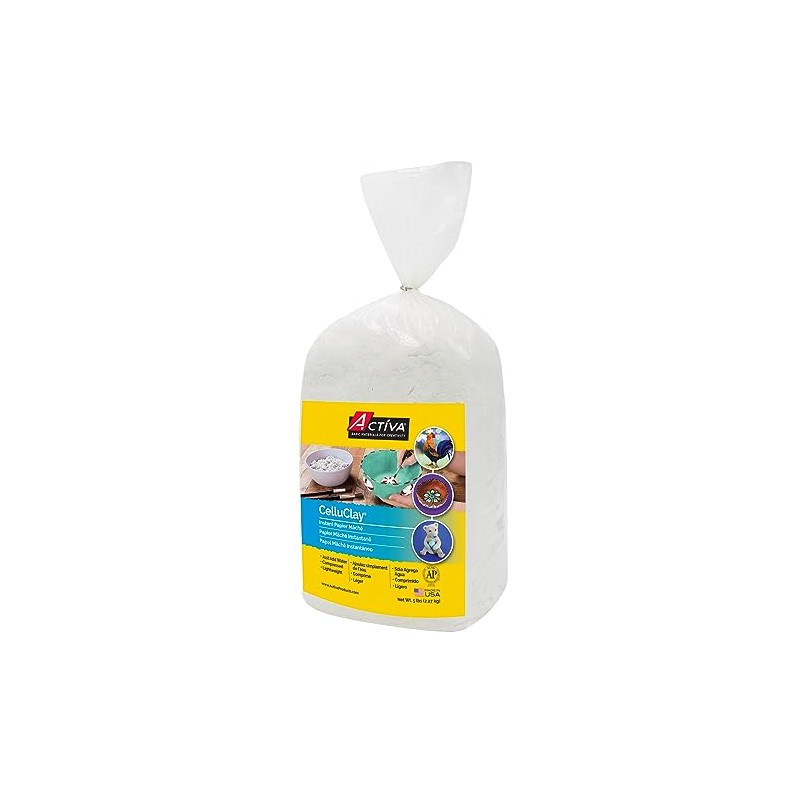 Papier mache has been an important material for artistic expression since its invention in China during the 8th Century. Long favored by artisans for its ease of use and high performance results, it has been a favored medium by everyone from accomplished artists to kid crafters. CelluClay Instant Papier Mache is the industry leading papier mache mix, perfect for your artistic needs. One-step CelluClay is easy to use; just add water and mix to the desired consistency. Made from 100% recycled paper, it mixes easily with minimal dust and there is no need for cutting paper strips or adding paste. Once mixed it molds quickly, is easy to handle and adheres to almost any surface. It air dries hard, durable, strong and light. Versatile, it can be sanded, sawn, cut or drilled as needed. It's easy to paint and decorate. Add texture, detail, patterns and designs with ease. CelluClay is perfect for everything from sophisticated artistic expression to important school projects. Make intricate sculpture, decorative accents, masks, dioramas, even volcanos, one is only limited by one's imagination. CelluClay is easily cleaned up with just soap and water. Safe and non-toxic, it meets or exceeds all US and European testing standards.Since its founding in 1959, ACTIVA Products has been the industry leader in supplying the highest quality materials for creativity. For artists, crafters, designers and educators, ACTIVA provides the right tools and products for artistic expression. Whether the need is for instant papier mache, air dry clays and plasters, vibrant sand, casting, sculpture or floral design, ACTIVA products provide the quality, consistency and proven performance expected by even the most demanding artisan. All our products are 100% safe, non-toxic and meet or exceed all US and European testing standards. ACTIVA Products, Materials for Creativity.