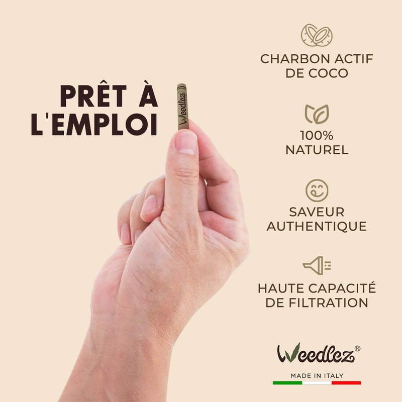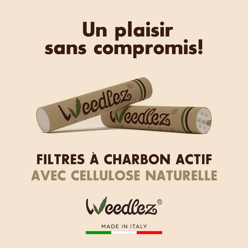 Full effect: the Weedlez filter creates a smooth experience without compromising the effect. Filters harmful substances. The purified activated carbon made of premium coconut effectively filters toxins and tar. Made in Italy are made in Italy from environmentally friendly materials and are characterised by their first-class quality. Sustainable packaging: during transport, the filters are well protected by robust packaging 15.5 x 22.5 x 2 cm. Besides, the packaging is reusable and recyclable.