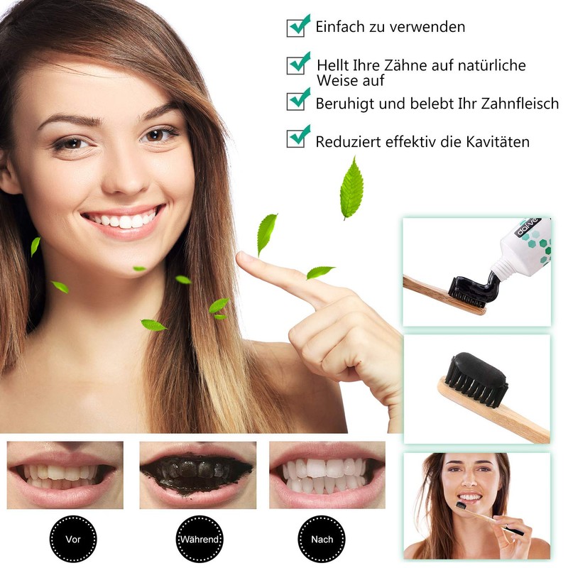 • Restore your strong white teeth and bring the best smile thanks to the active ingredient complex of activated carbon in the black toothpaste.