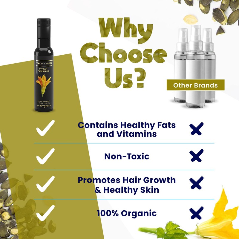 ACTIVATION Perfect Press® Styrian Pumpkin Seed Oil, Made with Raw Pumpkin Seed Extract for Bladder Control & Prostate Health, Pumpkin Oil for Hair Growth & Healthy Skin, Non GMO, 8 fl oz Products