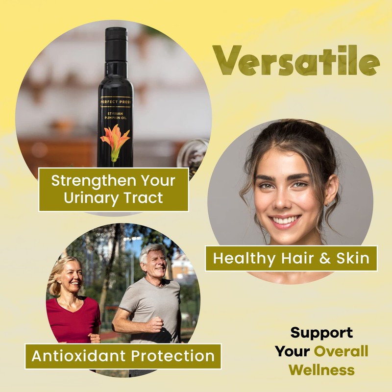 - Versatile Pumpkin Seed Oil Supplement - Experience the nutritive benefits of our perfectly pressed oil in more ways than one! Add it to your smoothie, juice, or salad. Massage it directly onto your skin and scalp. Or ingest 1-2 tablespoons in the morning.