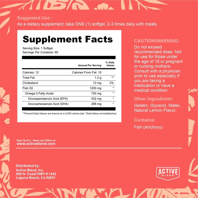 Active Blend Omega-3 Fish Oil – 1250mg Triple Strength with 690mg EPA & 260mg DHA – Wild-Caught, No Fishy Aftertaste – 60 Soft Gels | Active Blend