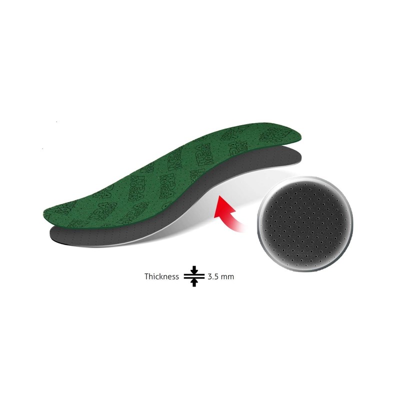 LATEX FOAM: The latex foam base ensures a super soft cushion for your feet, giving extra comfort while walking and reduces movement inside your shoe avoiding painful blisters. The insoles are thin, average thickness is around 3.50 mm.