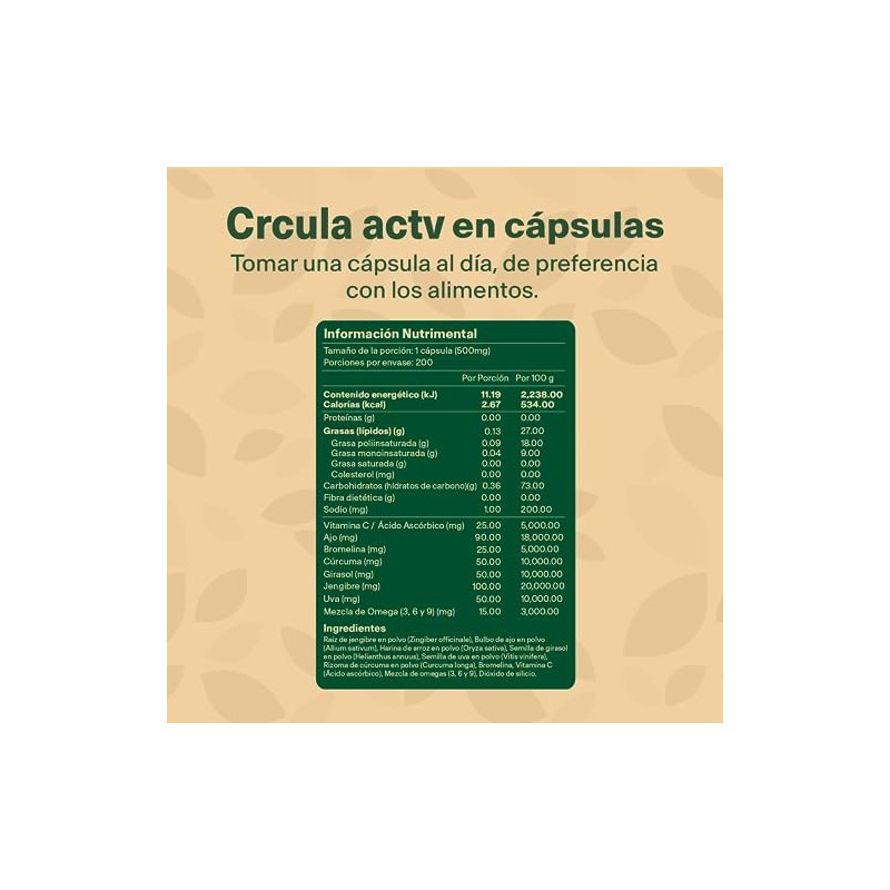 Active Circulation con 200 Capsulas de 500mg (4 Meses) con Vitamina Ccido Ascrbico, Ajo, Bromelina, Crcuma, Girasol, Jengibre, Uva y Mezcla de Omega