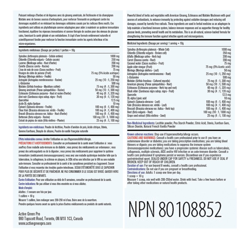 Active Green Pro Active Green Pro - Immune & Antioxidants Powder, Blend of Herbs, Ginseng, Echinacea, and Maitake Mushroom, Plant-Based Formula, No Fillers, No Sugar Added - 40 Servings