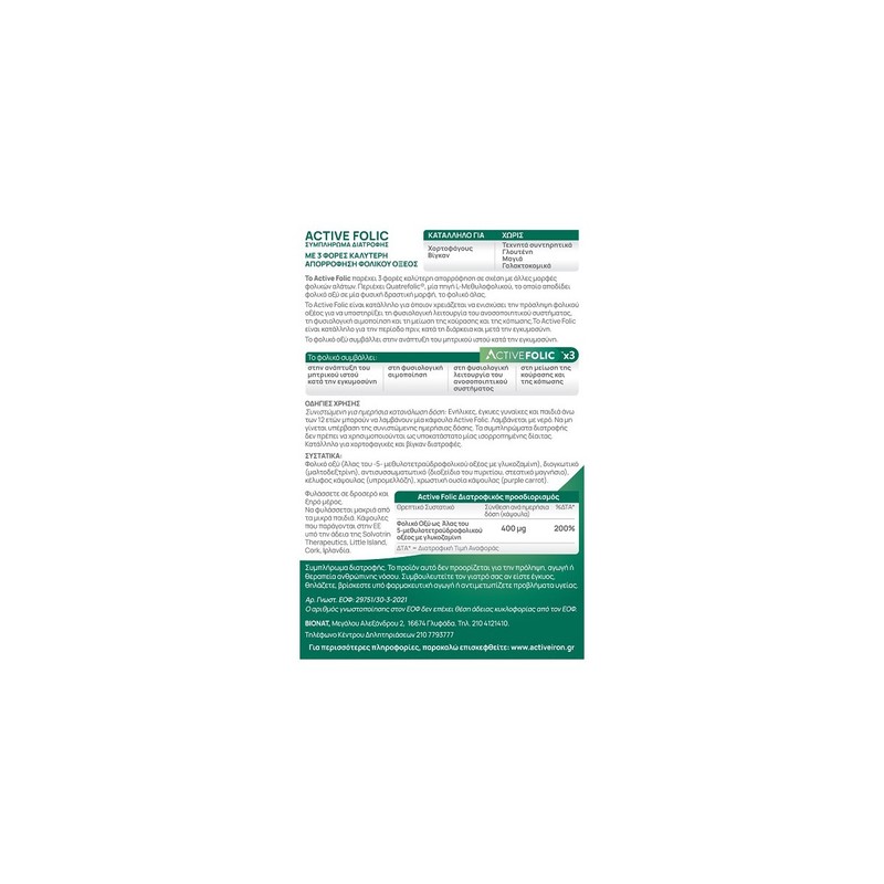 ACTIVE FOLIC Nutritional determination | ||