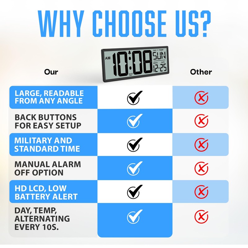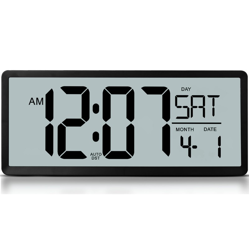 Active Living Oversized High Defintion Digital LCD Dynamic Wall Clock 14.5 x 5.9 inches, Battery Operated, Easy to Read, Auto DST, Large Display