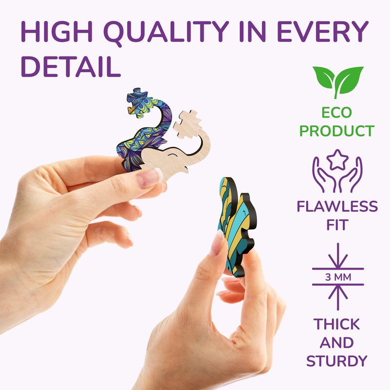 - DECORATION Each of our wooden puzzles with unique designs is an art and luxury piece that can be framed and decorated once assembled walls and showcases. We use safe dyes that retain their colour for a long period of time