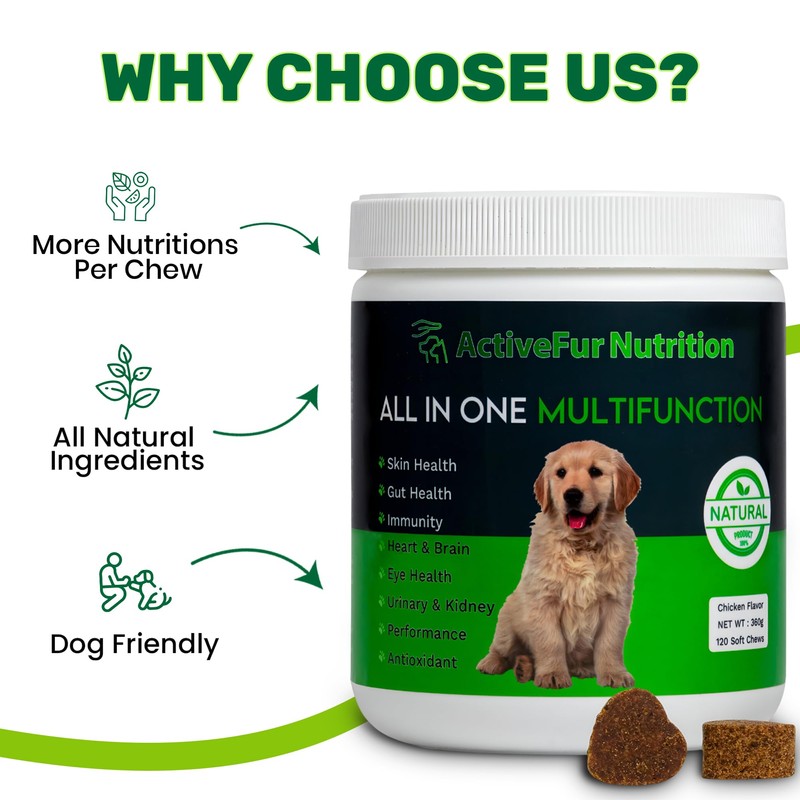 ActiveFur Nutrition All-IN-1 Multifunction Chews for Dogs - 120 Chicken Flavoured Soft Chews
