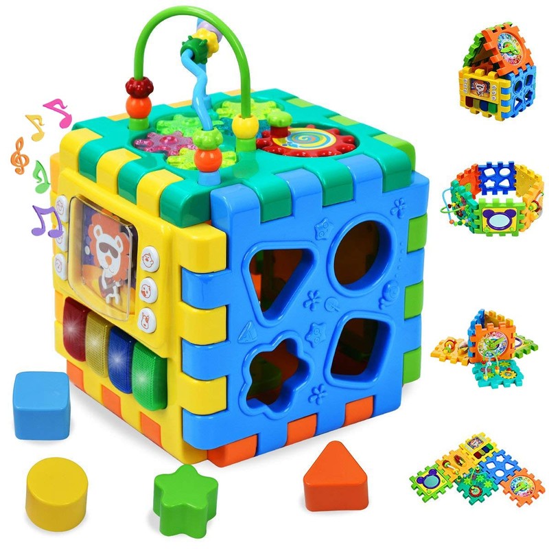 - 【FUN TO LEARNING】:Developing cognitive capacities of babies and toddlers is a vital, yet difficult job, but with the 6-in-1 activity cube toy your 1 year old boy and girl’s learning process is on fast forward.Letting them try all the fun activities is the best way to help him develop their mind and coordination skills while playing