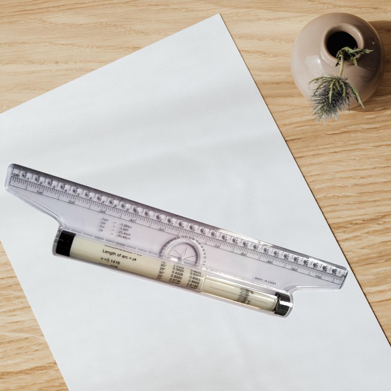 - Functions as a compass, horizontal ruler, straightedge, protractor, circle and angle template