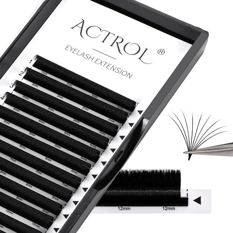 ACTROL Easy Fan Lashes Eyelash Extensions 0.05 C 60° Curl 10mm Mixed Tray Mink Volume Premade Russian Lashes 3D-20D Withstand 100℃
