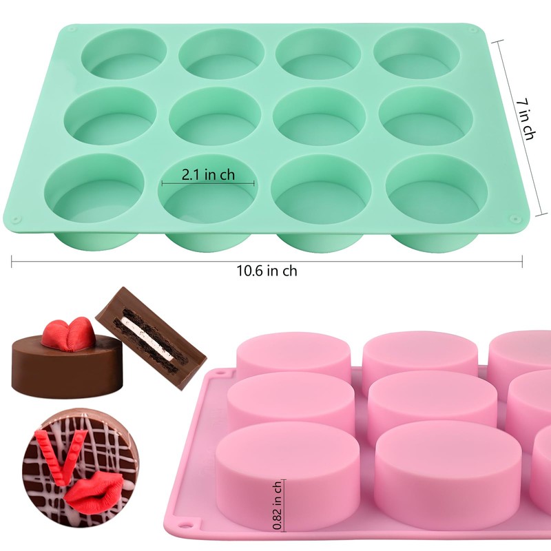 Actvty Round Chocolate Cookie Molds, New Size 12-Cavity Cylinder Chocolate Cover Cookie Silicone Molds for Candy Mini Cakes Jelly Baking(2 Pack)