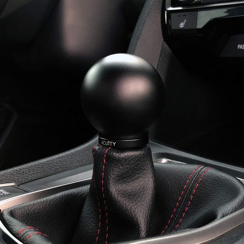 In recent years, countersunk knobs have become a popular way to achieve shorter shift throws and reduced knob height without modifying the shifter itself. A core problem with most countersunk knobs is that they don't fit well to the shift boot, leaving the shift boot to sag and the shift lever exposed. ACUiTY's POCO knob is the answer with its low height and built-in shift boot collar, the combination of which permits a very low shift knob height combined with a clean fitting shift boot. The POCO sits low, much lower than most stock and aftermarket knobs. Most knobs sit around 25mm (1 inch) or higher above the top of the actual shift lever. The POCO sits only 3-4mm taller than the top of the shift lever when mounted. The POCO's low profile means shifts will feel shorter and firmer with throws typically 5%-10% shorter than compared to non-countersunk knobs. The POCO is one of the most well-integrated countersunk knobs available with its built-in shift boot collar that easily clips into the knob for that perfect finished appearance. The POCO's boot collar is affixed to the shift boot using a low-profile cable tie (3 are supplied with each kit); the knob threads down on the shift lever until it stops. Once both parts are installed, the shift boot collar clips into the shift knob and installation is complete
