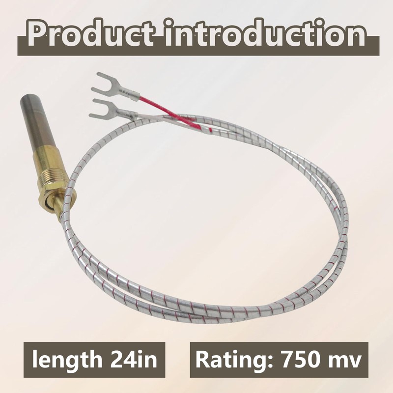 - Specifications: Length 24"(61cm) Glass Fiber Wire. Connecting type: spiral type and two-pole plug-in type. normally installed on plilot assembly used for fireplaces, frying, heating appliance; Assemnly Parts with Internal resistance (25°C) around 4000 mΩ and heating voltage above 750mV