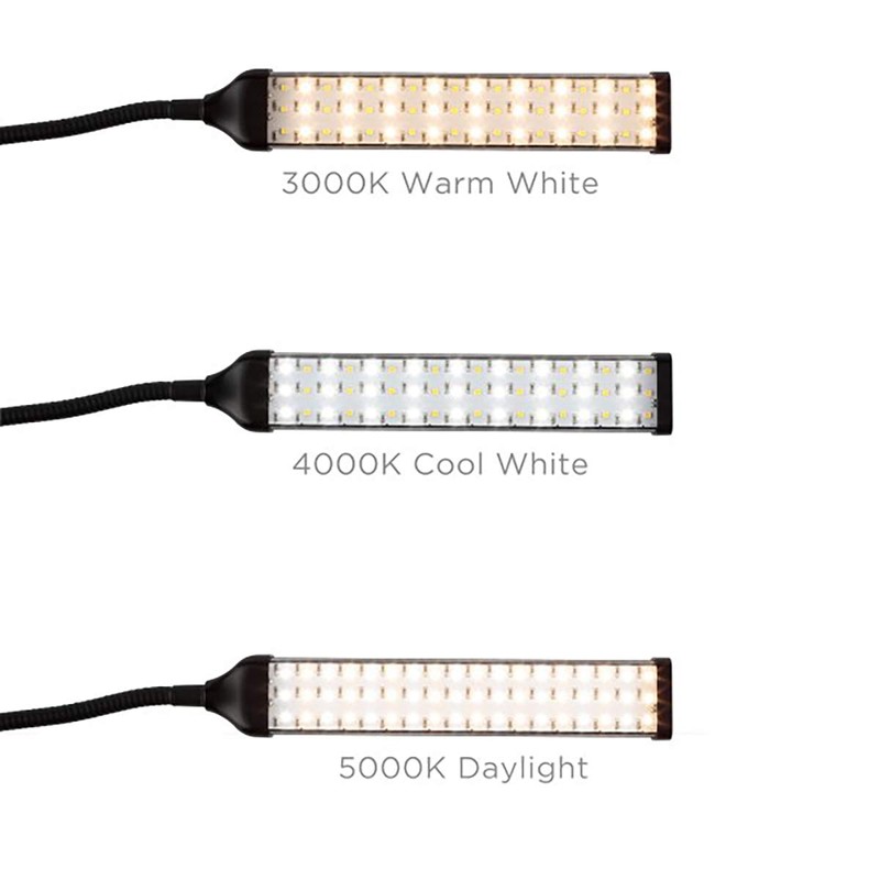 - Clip-on art studio, reading, piano light; Fully dimmable with ten brightness settings and three Color temperatures; Warm 3000k; Daylight 4000k; Cool 5000k; Retains your last setting when turned off and on again; 3 timer settings of 3, 6, and 12 hours