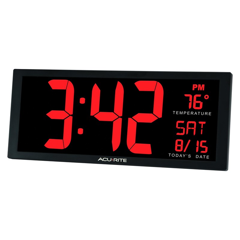 AcuRite 14.5" Large Digital LED Oversized Wall Clock with Date and Temperature, Perfect for Home or Office (75127M)