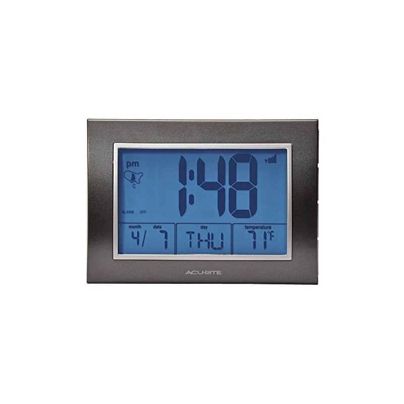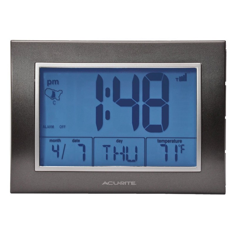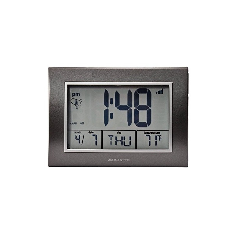 AcuRite Atomic Alarm Clock with Date, Day of Week and Temperature, Grey