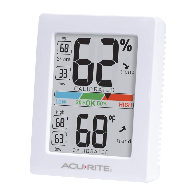 Master your humidity levels with the AcuRite Pro Indoor Hygrometer and Thermometer. Equipped with a magnet on the back for easy placement, this small humidity gauge is ready for plants, cigars, guitars, or whatever you need to protect. This digital temperature and humidity comfort monitor combo is everything you need, with enhanced temperature and relative humidity accuracy within +/- 0.5° F and +/- 2% RH, respectively.