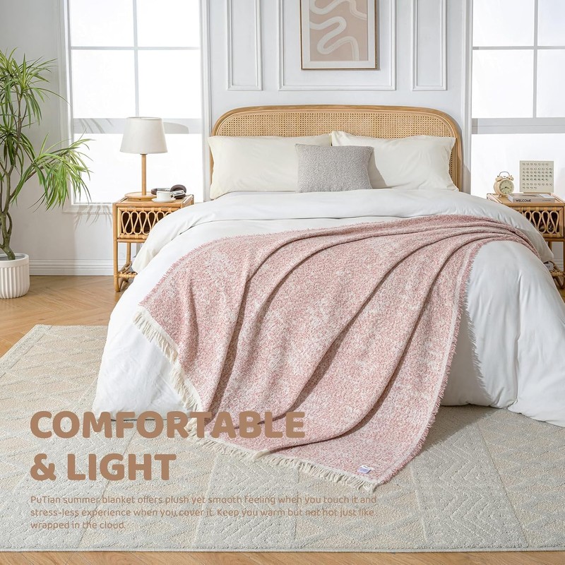 ACUSHLA Cotton Blanket,Cuddly Blanket, Microfiber, Soft, Cozy, Fluffy and Breathable Bedspread, Blanket for Sofa, Bed, Picnic, Travel,150 * 200 CM(Pink and White)