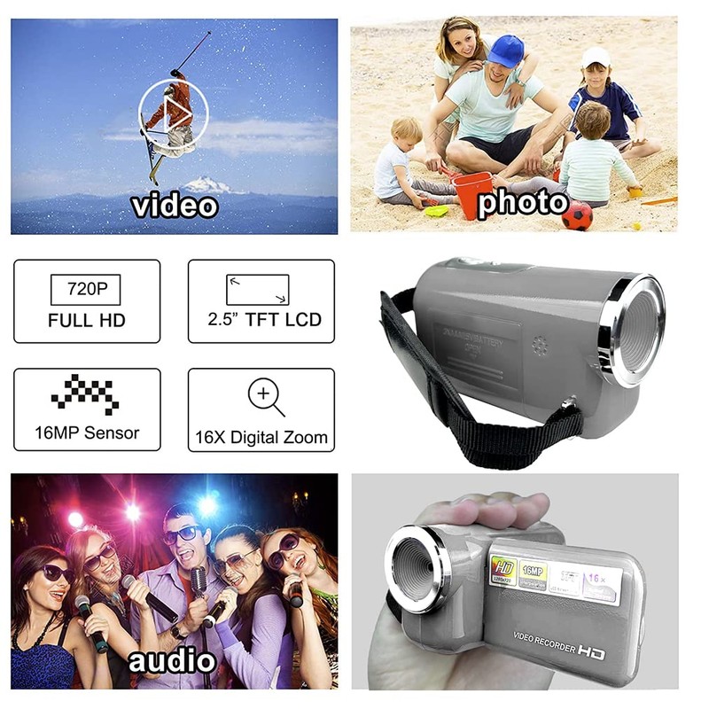 Acuvar 16MP Megapixel Compact Digital Camcorder with HD Video and Photos 16x Zoom with 2.4" Screen and USB Cable (Silver, Camera Only)