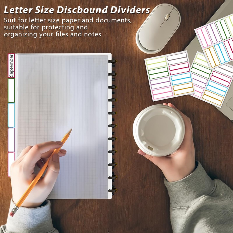 - 4. Transparent Dividers: this tab discbound dividers with transparent design, you can see notes through them, colorful tab stickers for quick reference, disc bound planner supplies are perfect for use in schools and offices