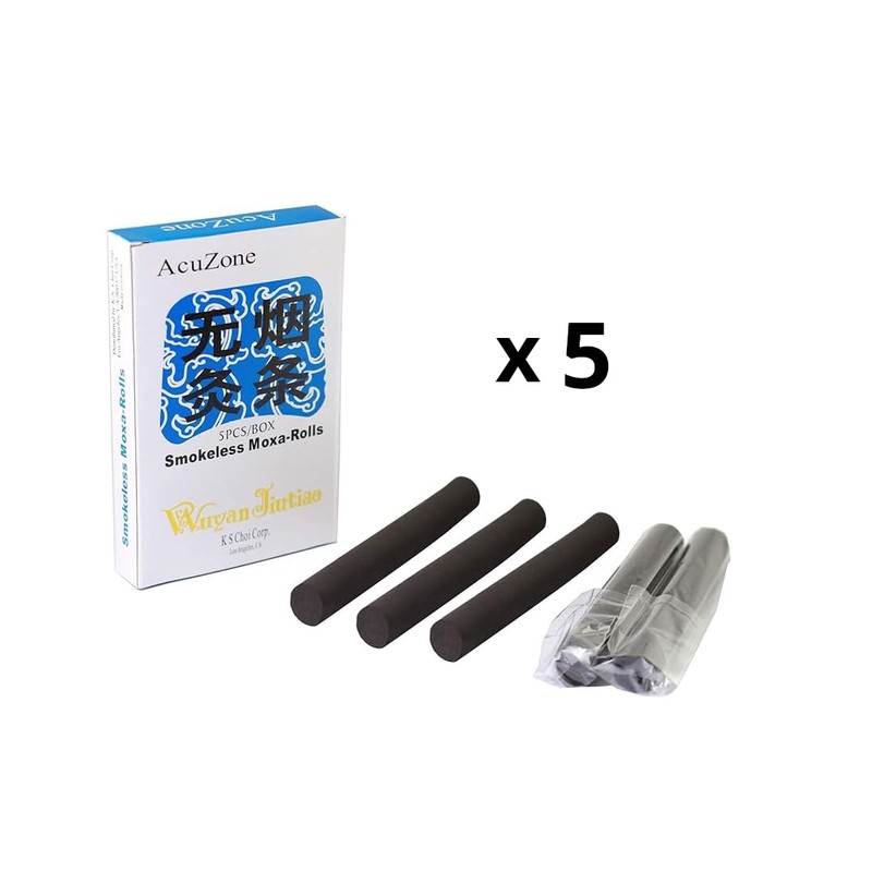 Acuzone Smokeless Moxa Rolls (5 Rolls/Box) - 5 Bundle Pack (Total 25 Rolls)