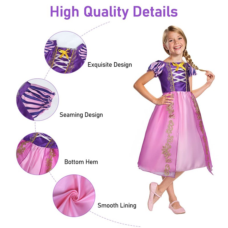 - 【Perfektes Geschenk】Das langhaarige Prinzessinnenkleid mit lila Kopfschmuck und Zauberstab-Set ist ein ausgezeichnetes Geschenk für Ihr Mädchen, um in einem Urlaub oder auf einer Party eine Prinzessin zu werden. So hebt sich das Kind von der Masse ab! Der Rock und die Ärmel haben eine gute Luftdurchlässigkeit und geben nicht zu viel Wärme ab. Dies ist das beste Geschenk für Ihr Mädchen, bitte zögern Sie nicht!