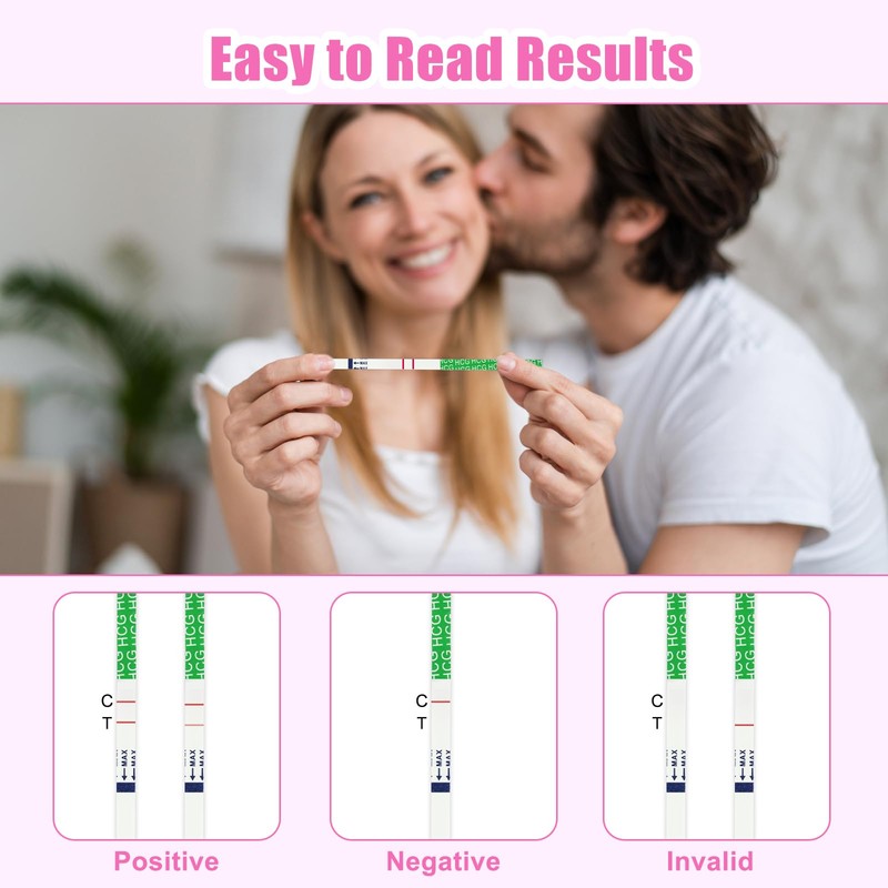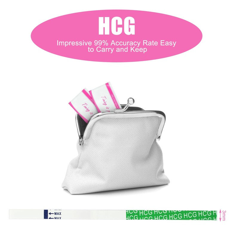 - Easy to use: open the packaging and remove the strips. Dip the absorbent tip into the urine for 15 seconds (at least 10 seconds) and then lay the pregnancy test stick flat. Please note that the results should be read within 10 minutes and the results will be invalid after 10 minutes.