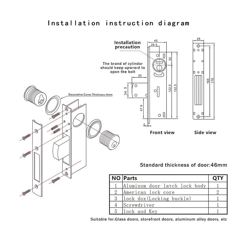 - Applicable Scenarios: This mortise door lock is suitable for a wide range of framed glass doors, wooden doors with a bolt lock design, perfect for commercial buildings and storefront doors, it can work perfectly with commercial door locks such as storefront deadbolts, mortise and hook locks, and it can be installed as a replacement for old and new locks to meet all of your usage needs.