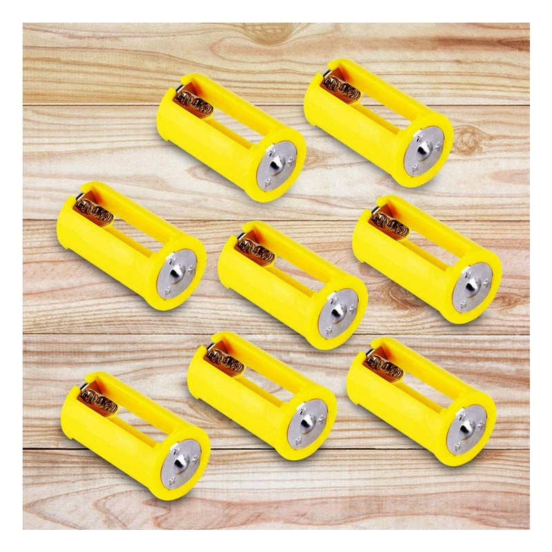 Acxico 8 Pcs AA to Size D Battery Adapters Converter Cases Plastic Parallel Yellow