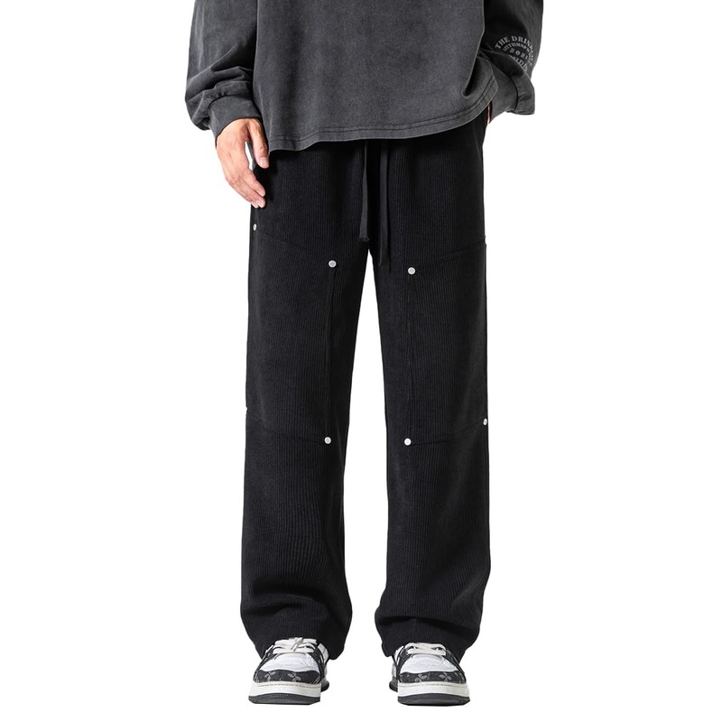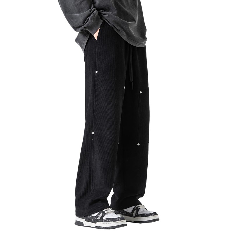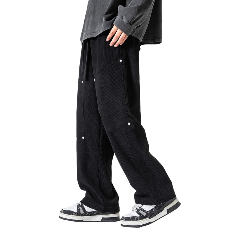 Acydar Mens Drawstring Straight Leg Pants Corduroy Joggers Pants Casual Cargo Pants Black