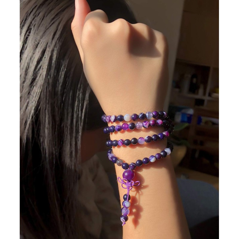 AD Beads Natural Gemstones Buddhist 108 Prayer Healing Beads Mala Stretchy Bracelet Necklace 6mm (Purple Stripe Agate)