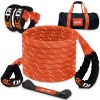 - 【Enhanced Design, Stronger Adaptability】This recovery rope comes with 2 soft shackles and heavy-duty protective sleeves to protect against abrasion, overheating and slipping. The entire rope is coated with Polyurethane (PU) to enhance its toughness against UV, water and abrasion, making it last longer, suitable for harsh weather conditions and all-Terrain, guarantees its durability to the greatest extent.