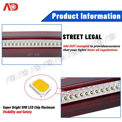 ✔【Super Brightness】 The third brake light is powered by high power SMD LED chips, life span 10,000 to 50,000 working hours, 360° uniform ray, forms whole strip of LED lighting for improved brightness and style, which are three times brighter than your stock.