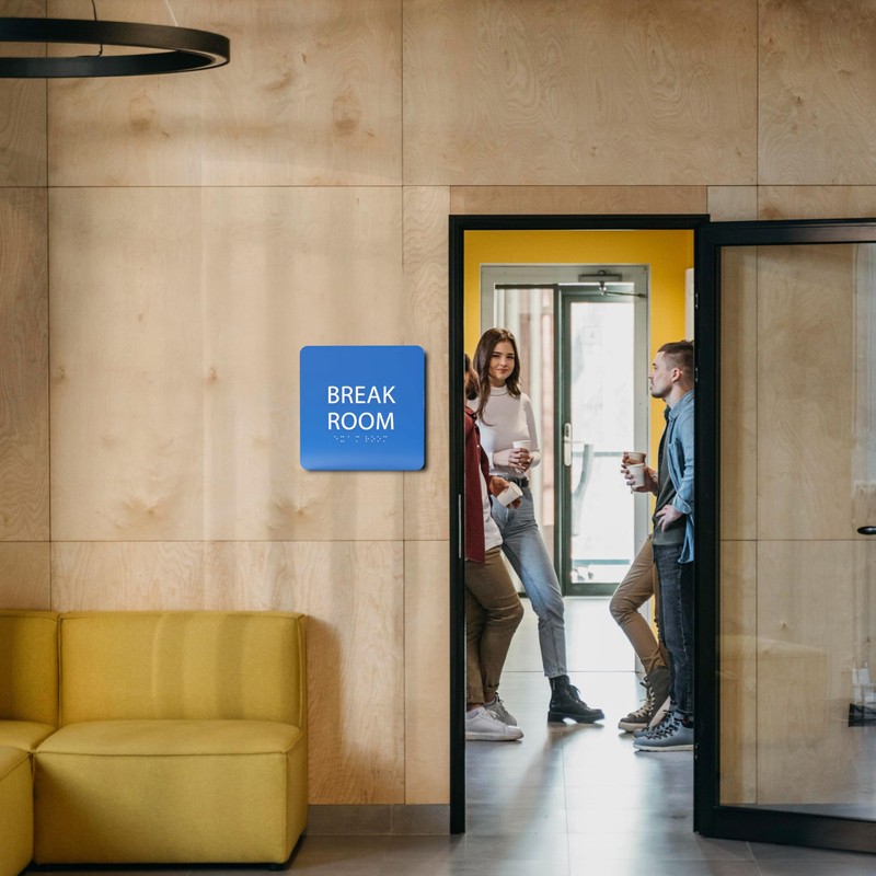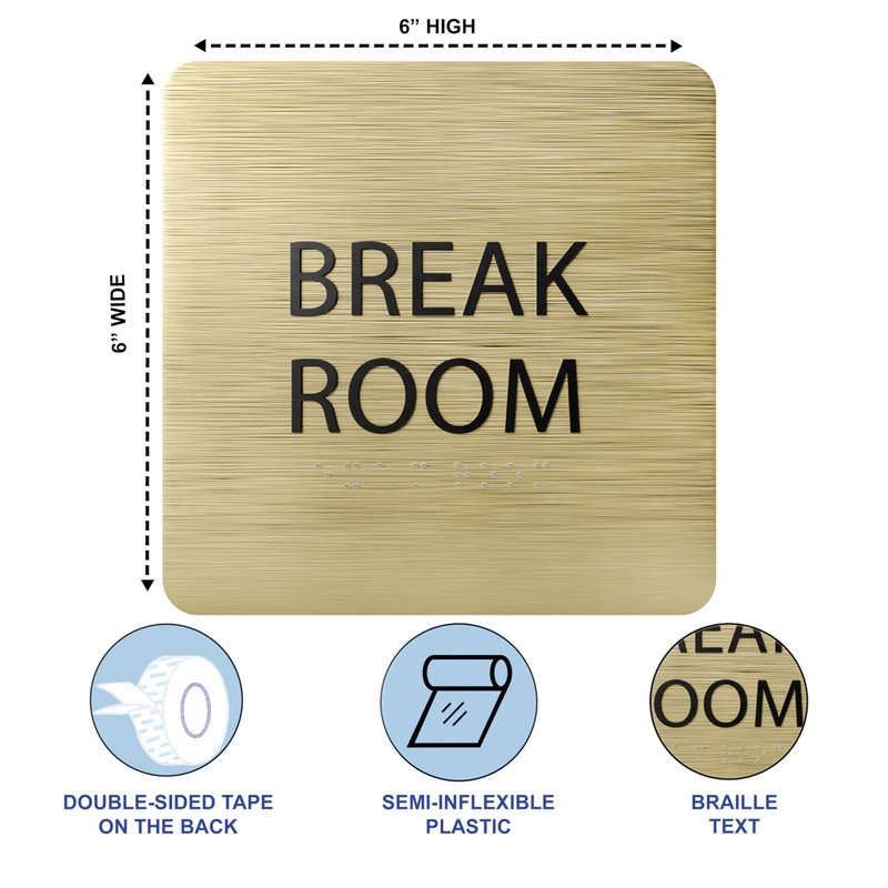 ADA CENTRAL SIGNS - 6" X6" Break Room Sign - ADA Compliant Tactile Graphics Grade 2 Braille Text Acrylic Wall Signs - Employee Kitchen, Lunch Room Sign for Offices, Hotels, Schools, and Restaurants