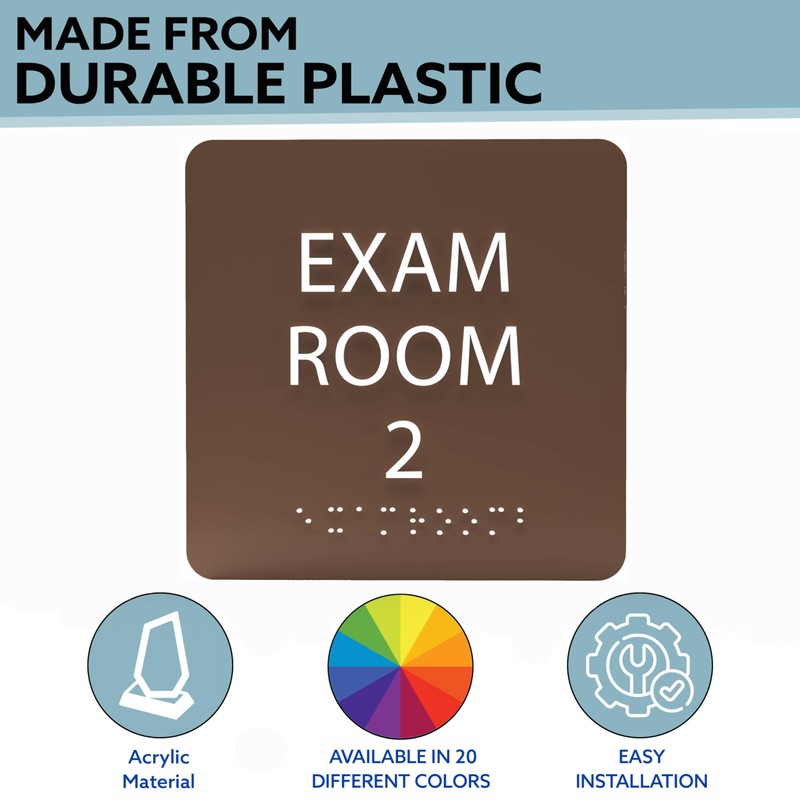 ADA CENTRAL SIGNS - 6" X6" Exam Room 2 Sign - ADA Compliant Tactile Graphics Grade 2 Braille Text Acrylic Wall Signs - Educational Institution Directional Assistance Test Center Door Sign for Schools