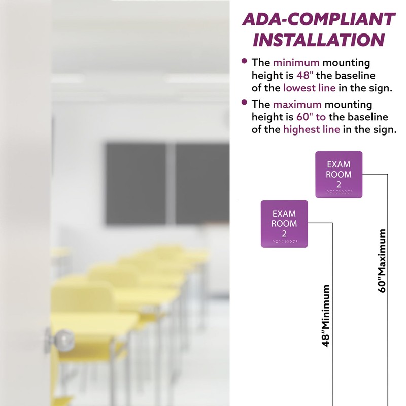 - ✍️ HIGH VISIBILITY SIGNAGE: ADA Central Signs are 100% ADA compliant and have a non-glare finish for improved visibility. Maintain public ADA rules, including raised symbols and lettering. The exam room sign serves as a visual indicator to guide students, teachers, and staff to the designated space for exam purposes.