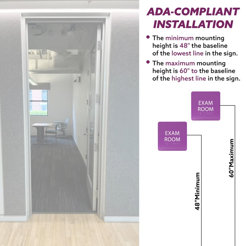 ADA CENTRAL SIGNS - 6" X6" Exam Room Sign - ADA Compliant Tactile Graphics Grade 2 Braille Text Acrylic Wall Signs - Educational Institution Directional Assistance Test Center Door Sign for Schools