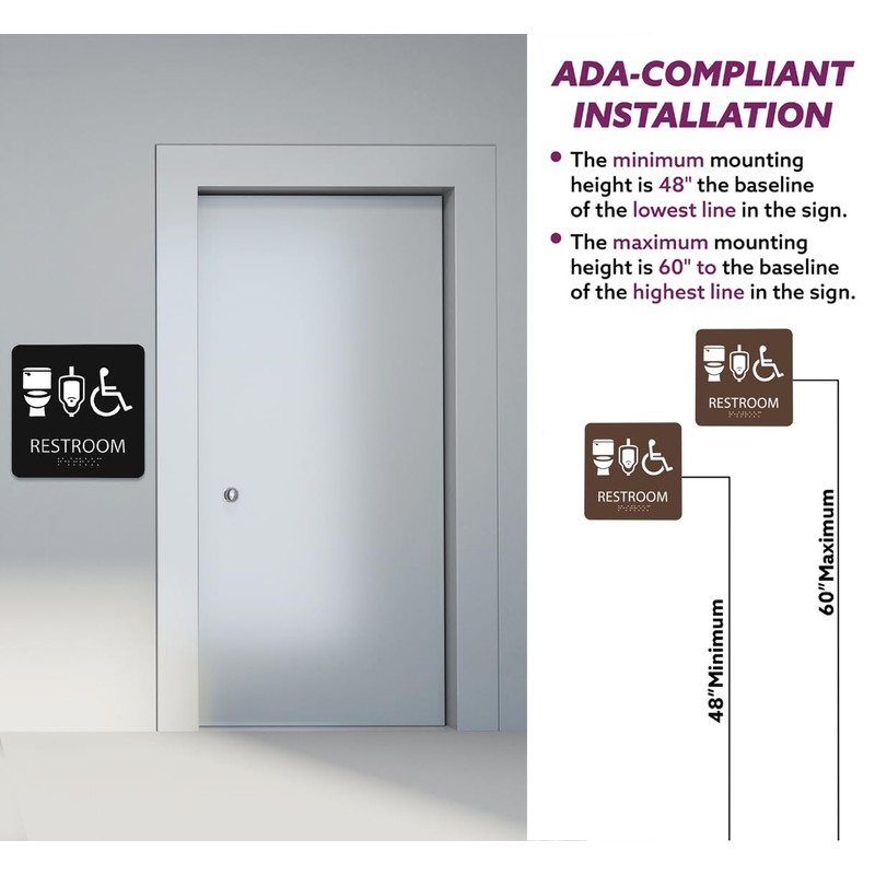 - đ» HIGH VISIBILITY SIGNAGE: ADA Central Signs are 100% ADA compliant and have a non-glare finish for improved visibility. Maintain public ADA rules, including raised symbols and lettering. These gender-neutral restroom signs are designed to create a safe and welcoming environment for individuals who may not identify strictly as male or female.