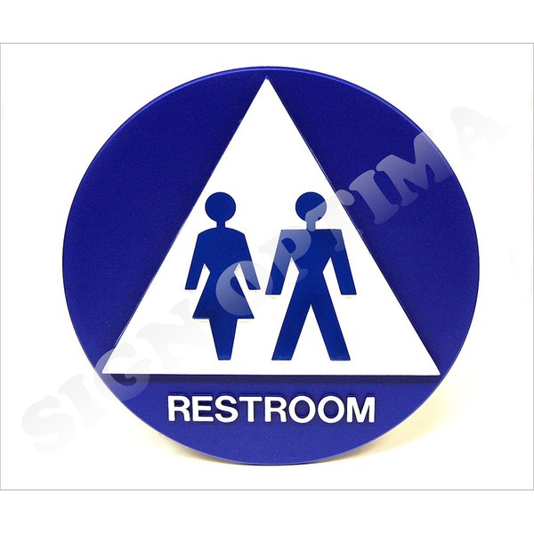 ADA Unisex Restroom Sign,12" Round/Triangle Blue/White Door Sign