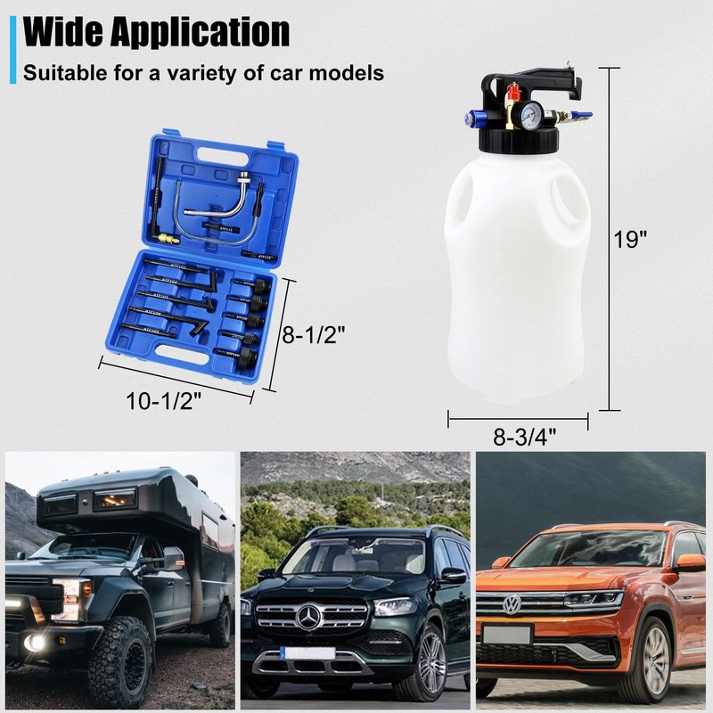 - ATF Adapters-- ATF extractor and dispenser tool includes 15PCS ATF adapters, which are well kept in a blow-molded case. These adapters compatible with Ford, BMW, Nissan, Honda, Audi, Volkswagen DSG, Volkswagen CVT, Skoda, Porsche, Mercedes, Mini Cooper, Kia, Toyota, Hyundai, Infiniti, Volvo and Lexus. Unplug the drain plug at the bottom of the gearbox, drain the used transmission fluid, connect the ATF adapter to the fill or drain port, push the new ATF into the engine by the fluid transfer pump