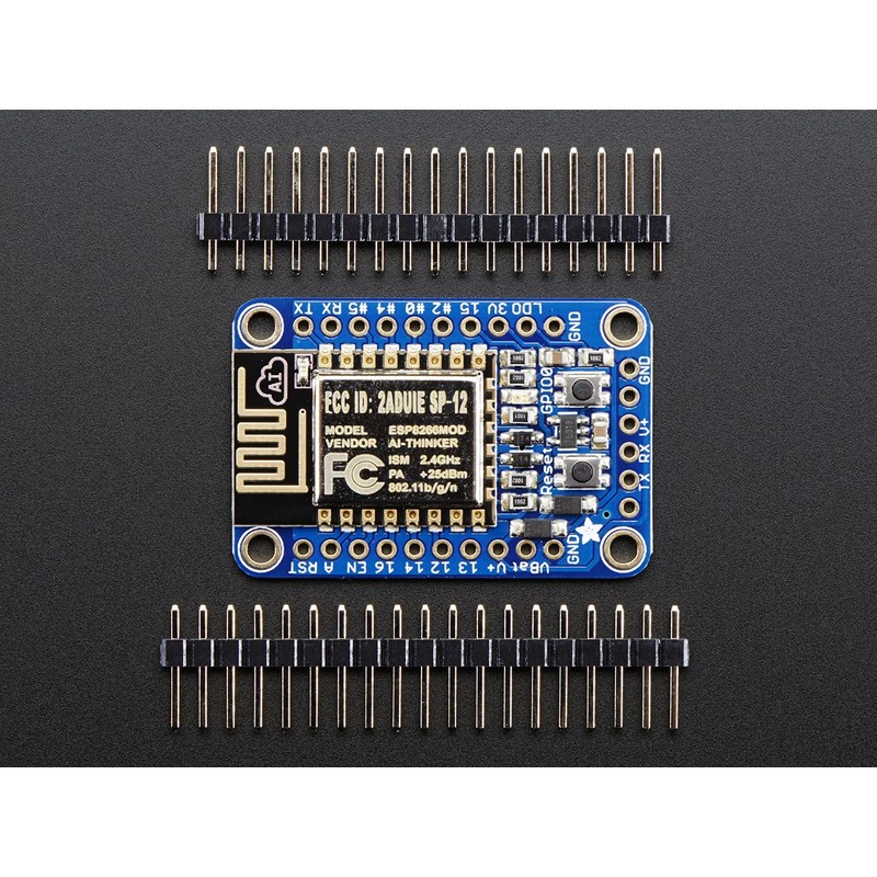 Add Internet to your next project with an adorable, bite-sized WiFi microcontroller, at a price you like! The ESP8266 processor from Espressif is an 80 MHz microcontroller with a full WiFi front-end (both as client and access point) and TCP/IP stack with DNS support as well. While this chip has been very popular, its also been very difficult to use. Most of the low cost modules are not breadboard friendly, don't have an onboard 500mA 3.3V regulator or level shifting, and aren't CE or FCC emitter certified....UNTIL NOW!