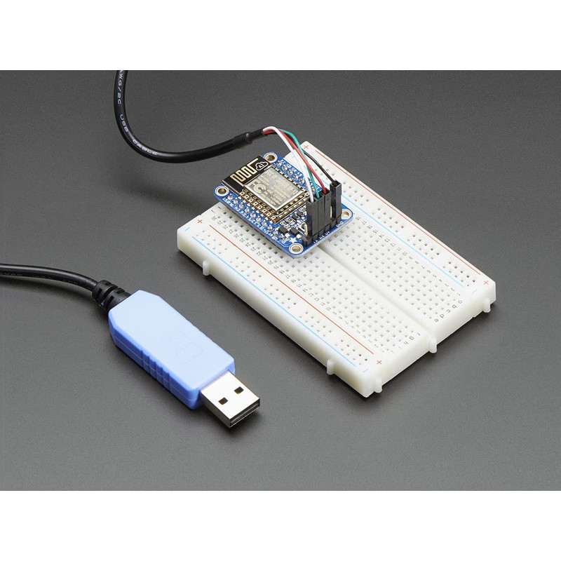 One breakout at the end has an "FTDI" pinout so you can plug in an FTDI or console cable to upload software and read/write debugging information via the UART. When you're done with your coding, remove the cable, and this little module can be embeded into your project box.