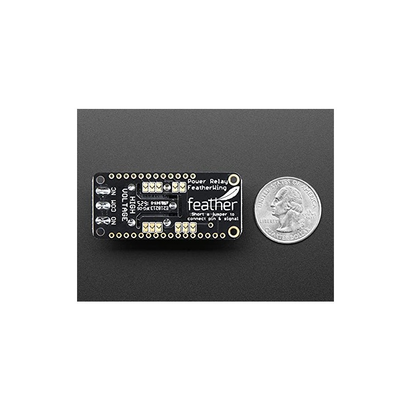 Works with all/any of our Feather boards, just wire up the relay control pin to whatever GPIO you like! Using our Feather Stacking Headers or Feather Female Headers you can connect a FeatherWing on top of your Feather board and let the board take flight. Check out our range of Feather boards here.