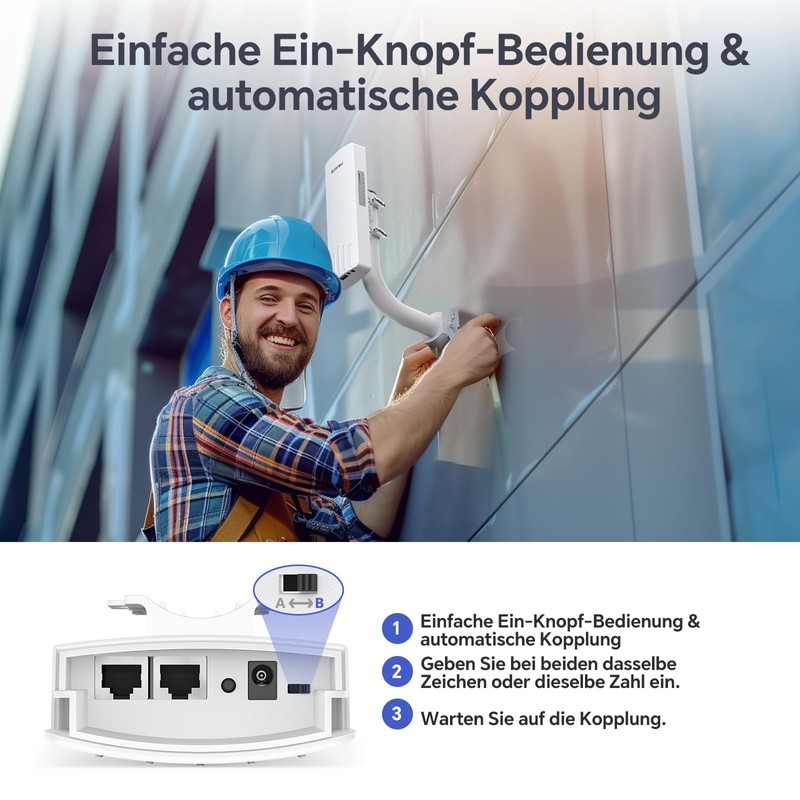 - Versatile connectivity: With its PtP/PtMP functions, the Internet bridge extends your network between buildings, ideal for sharing high-speed Internet with neighbors to reduce costs and support reliable monitoring in areas such as elevators and garages.
