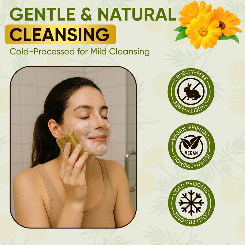 • Infused with Real Calendula Flowers – Calendula is traditionally used to soothe and calm skin; visible petals are embedded in every bar