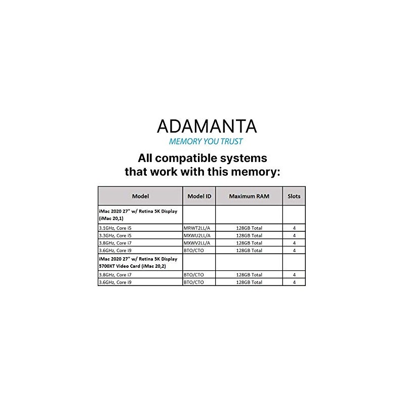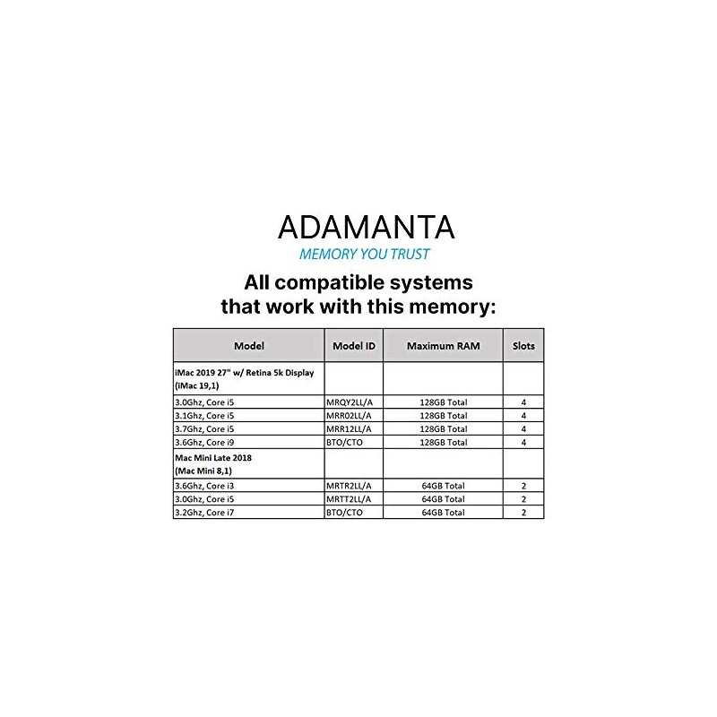Adamanta 32GB (2x16GB) Memory Upgrade for 2020 Apple iMac 27" w/Retina 5K Display, 2019 Apple iMac 27" w/Retina 5K Display, 2018 Apple Mac Mini DDR4 2666Mhz PC4-21300 SODIMM 2Rx8 CL19 1.2v DRAM RAM