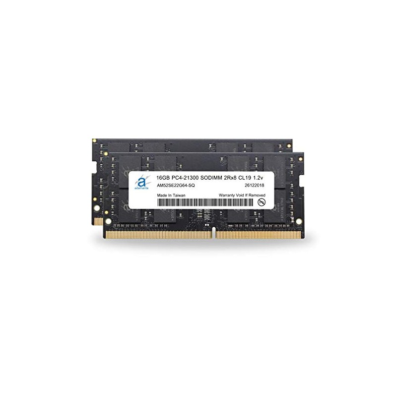 - 32GB ( 2x16GB ) DDR4 2666 MHz Non-Parity/Non-ECC Unbuffered SODIMM Memory 260 pin Dual Rank Module.